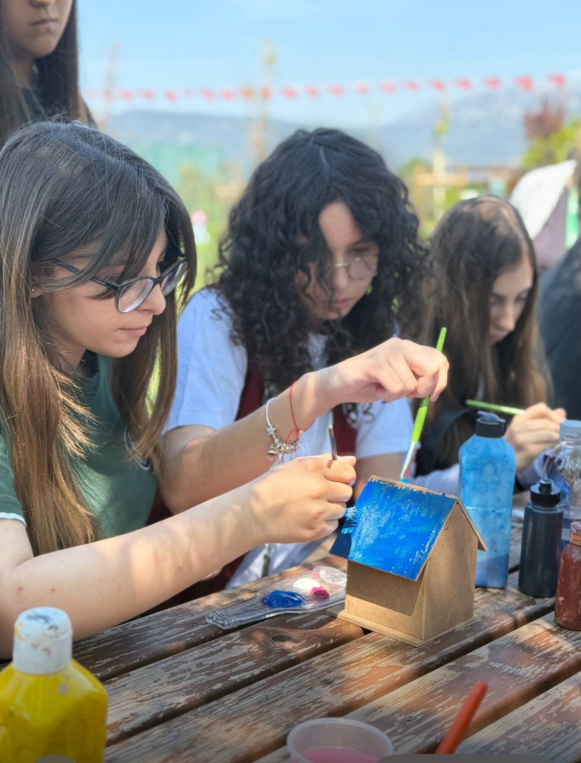 Ebru sanatı ve kuş evleri yapımı atölye çalışmalarında geleneksel sanatlarla tanıştı,