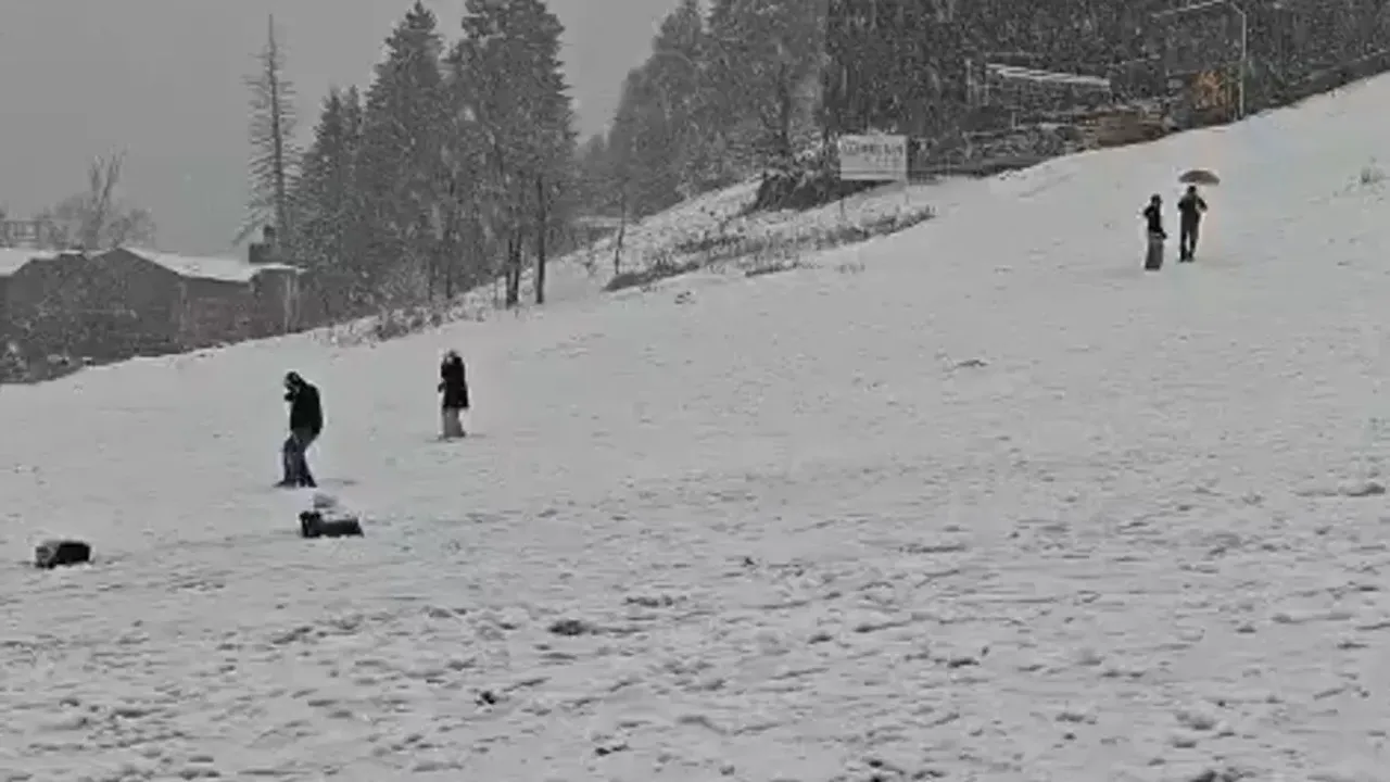 Yaylayı ziyaret eden yerli ve yabancı turistler, hem karın tadını çıkardı hem de manzarayı cep telefonlarıyla görüntüledi.