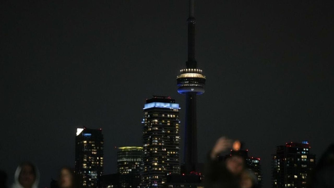 Dünyanın en yüksek yapılarından biri olan CN Tower’ın ışıklarının söndürülmesi, Toronto silüetinde sembolik bir görsel değişim yarattı.