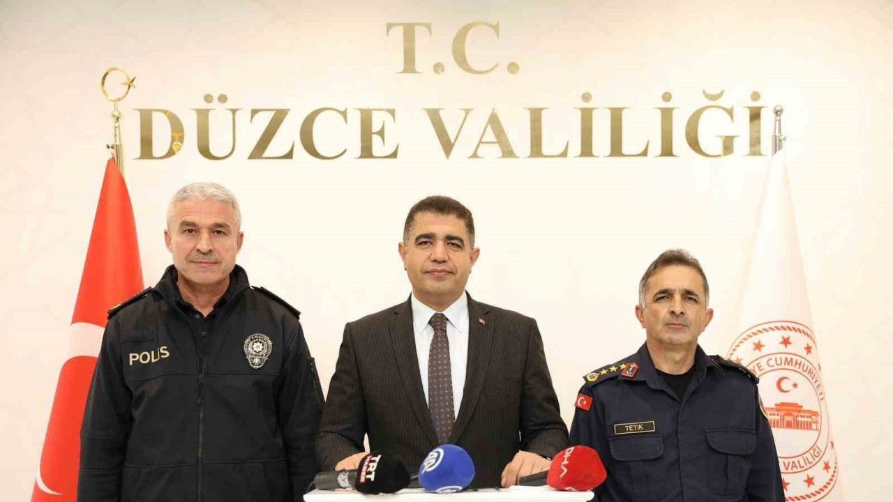 Düzce’de terör örgütlerine yönelik operasyonlardan da bahseden Vali Aslan, "2025 yılında ilimiz sınırları içerisinde terör örgütü PKK’ya yönelik 11 operasyon gerçekleştirilmiş, 5 şahıs gözaltına alınmış, 1 şahıs tutuklanmıştır. FETÖ Terör Örgütü’ne yönelik gerçekleştirilen 14 operasyonda 13 şahıs, DEAŞ Terör Örgütü’ne yönelik ise 18 operasyonda 18 şahıs gözaltına alınmıştır. Gözaltına alınan şahıslardan 2’si tutuklanmıştır" dedi.