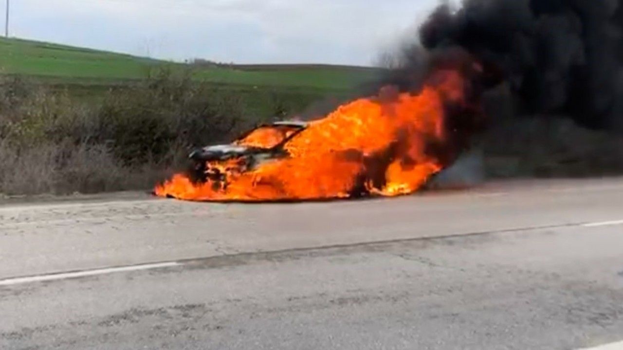 Edirne’de seyir halindeyken alev alan otomobil küle döndü.