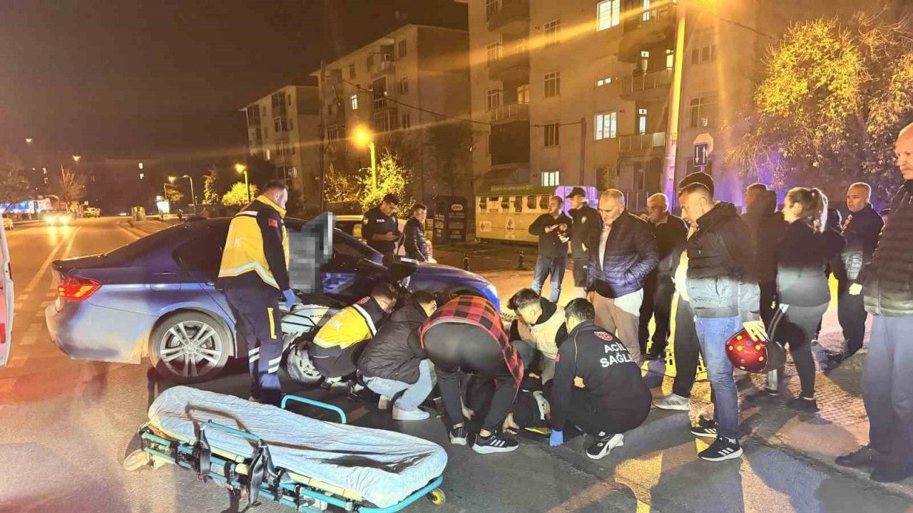 Edirne’de otomobille çarpışan motokurye yaralandı.