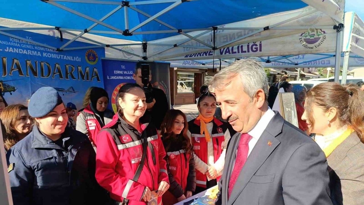 Edirne’de 25 Kasım Kadına Yönelik Şiddete Karşı Uluslararası Mücadele Günü dolayısıyla açılan stantta Kadın Destek Uygulaması (KADES) tanıtıldı.