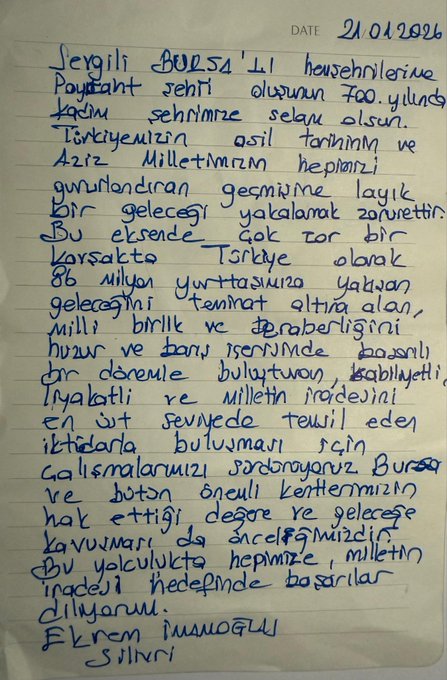 İmamoğlu'nun yazdığı mektup şöyle;