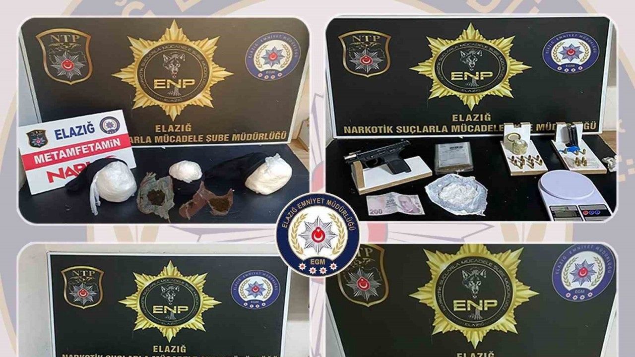 Elazığ’da İl Emniyet Müdürlüğü Narkotik Suçlarla Mücadele Şube Müdürlüğü ekipleri tarafından uyuşturucu madde ticareti, sevkiyatı ve kullanımının engellemesine yönelik operasyonlar devam ediyor. Bu çerçevede ekipler, kontrol noktasında şüphelendikleri aracı durdurarak arama yaptı. Narkotik köpeğinin de katıldığı aramada, araç teybinin arkasına gizlenmiş 5 parça halinde 2 kilogram 548 gram metamfetamin maddesi ele geçirildi. Ayrıca ekipler tarafından 27-29 tarihleri arasında yapılan operasyonlarda ise 16 parça halinde 467,68 gram sentetik kannabinoid maddesi, 2 parça halinde 18,65 gram esrar, 52 adet sentetik ecza maddesi, 1 adet ruhsatsız tabanca, tabancaya ait 17 adet fişek ve 1 adet hassas terazi ele geçirildi.