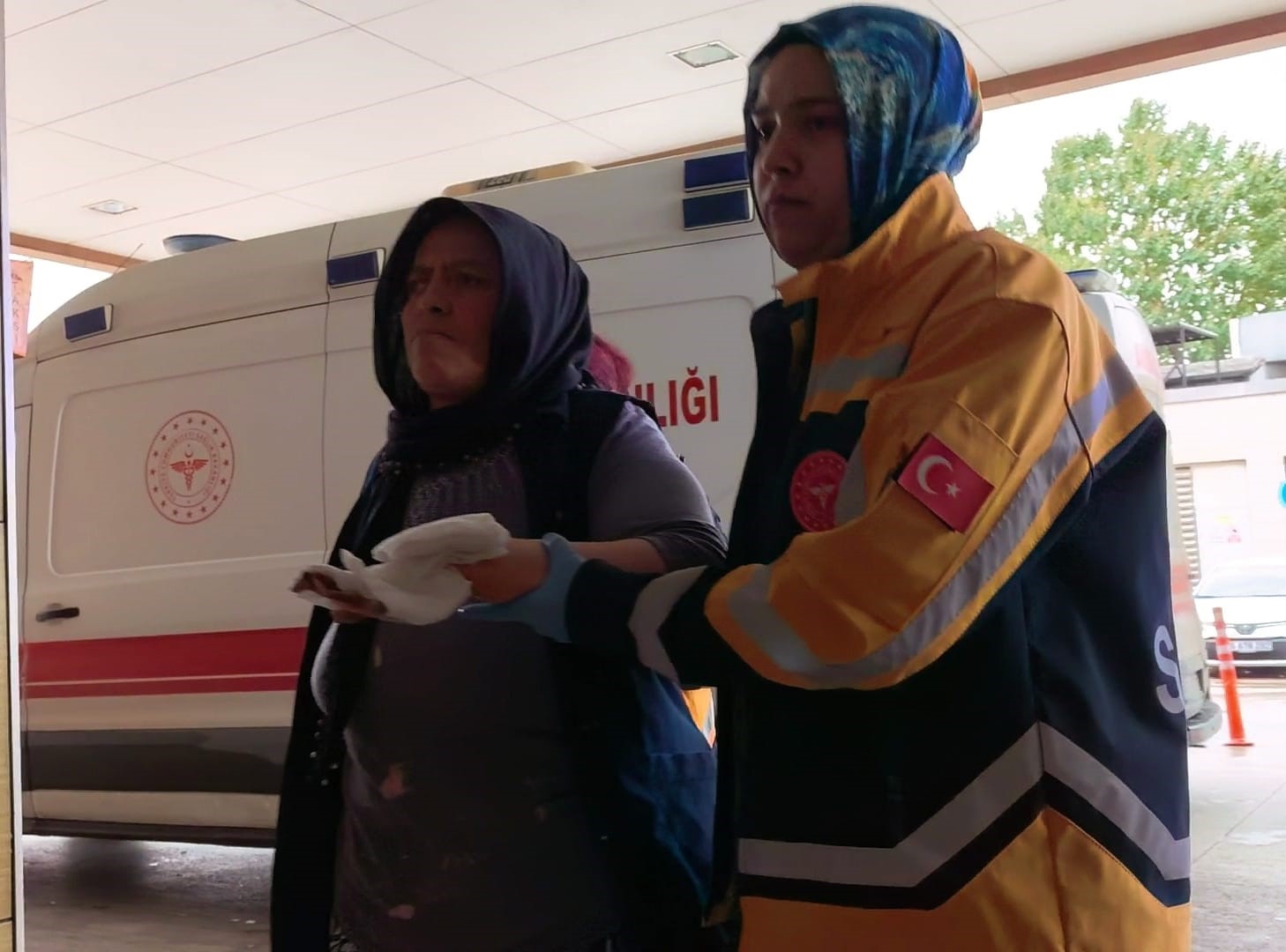 Yaralı kadın olay yerine sevk edilen ambulansla İnegöl Devlet Hastanesine kaldırıldı. Kadın ilk tedavinin ardından ambulansla Bursa Şehir Hastanesine sevk edildi.
