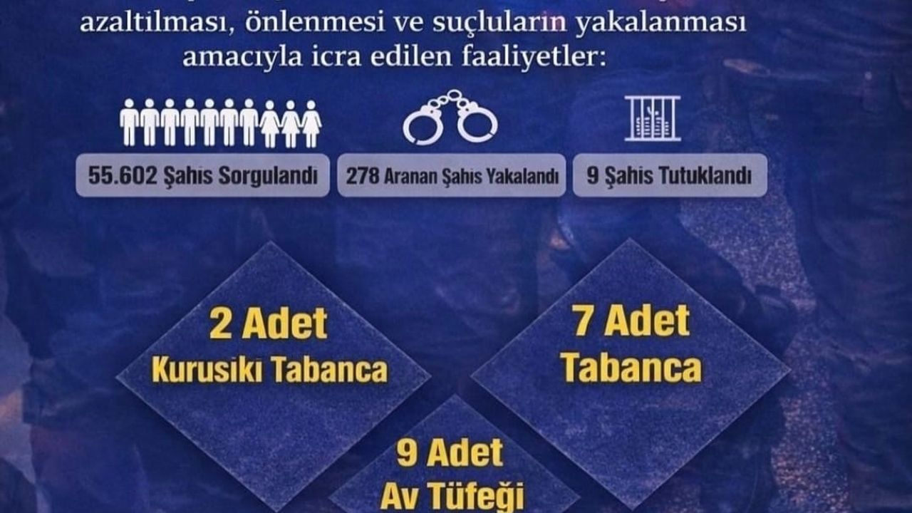Narkotik uygulamalarında ise 75 olaya müdahale edilirken 75 şahsa işlem yapıldı, 2 şahıs tutuklanarak cezaevine gönderildi. Uygulamalarda 1 kilo 751,41 gram esrar ele geçirildi.