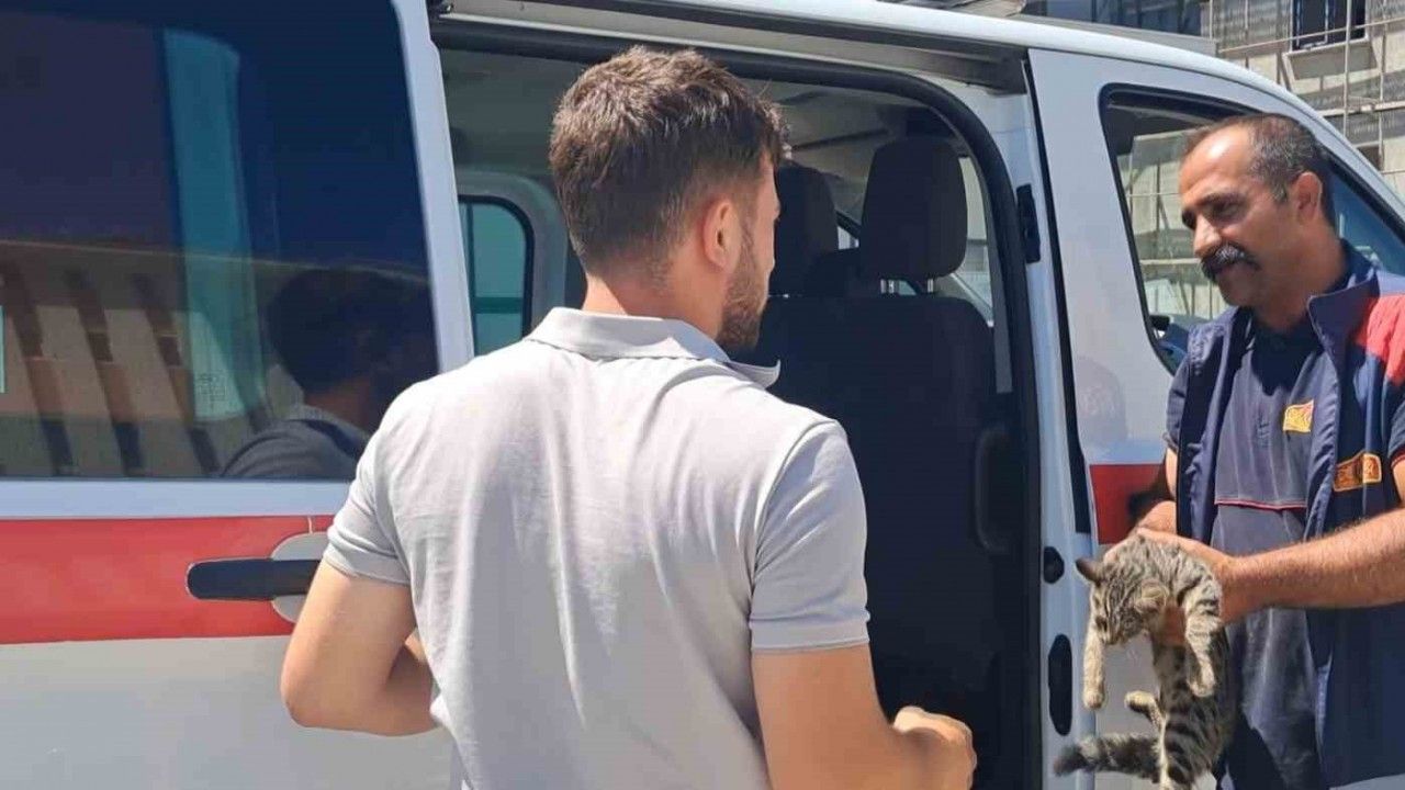 Aracını park ettiği yerden almaya giden sürücü, ön kaputtan seslerin geldiğini duydu. Kaput kapağını kaldıran sürücü, motor kısmına kedinin sıkıştığını anlayınca durumu itfaiyeye bildirdi.