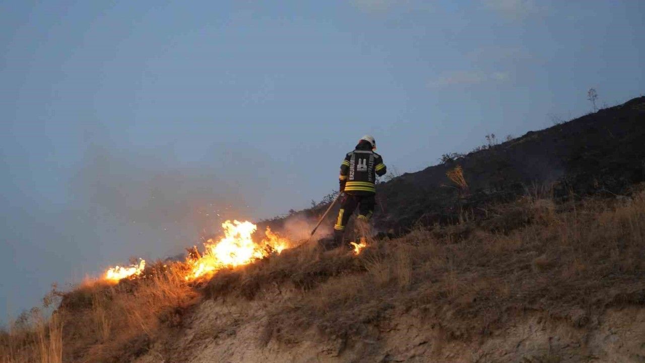 Erzurum’da havai fişek nedeniyle çıkan ot yangını itfaiye ekiplerince söndürüldü.