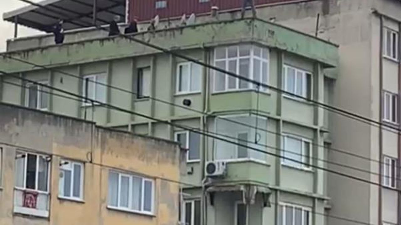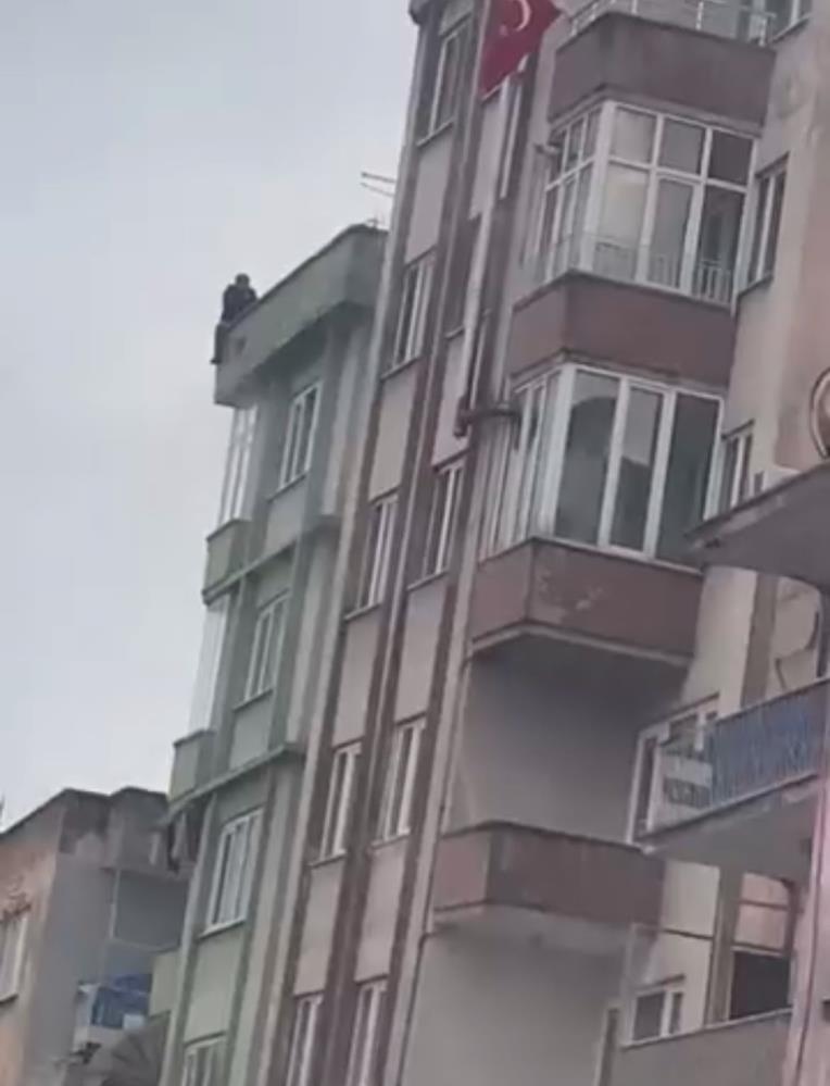 Saatlerdir çatıda bekleyen şahıs polis ekiplerinin ikna çabasıyla çatıdan indirilirken, şahsın eşiyle barışmak için çatıya çıktığı öğrenildi.