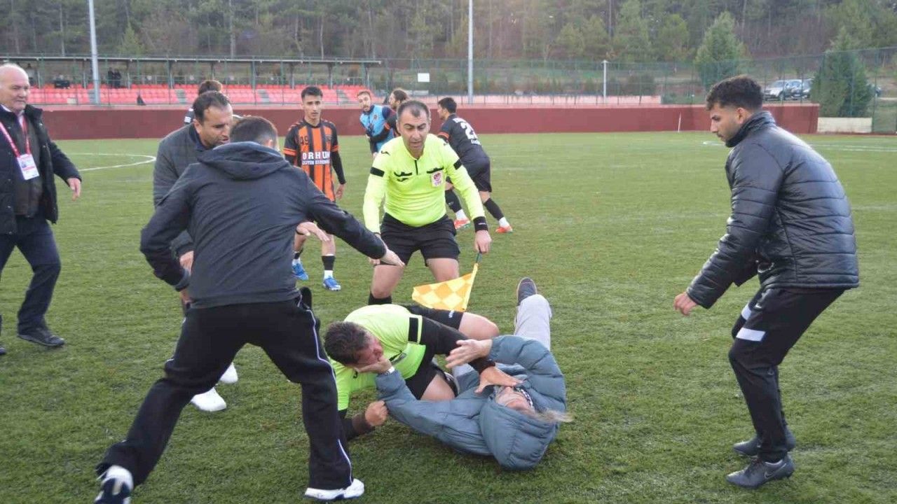 Eskişehir’de, Birlikspor-Eskişehir Kolej futbol takımları arasında oynanan amatör küme karşılaşmasında hakeme yönelik saldırı anı kameralara yansıdı.