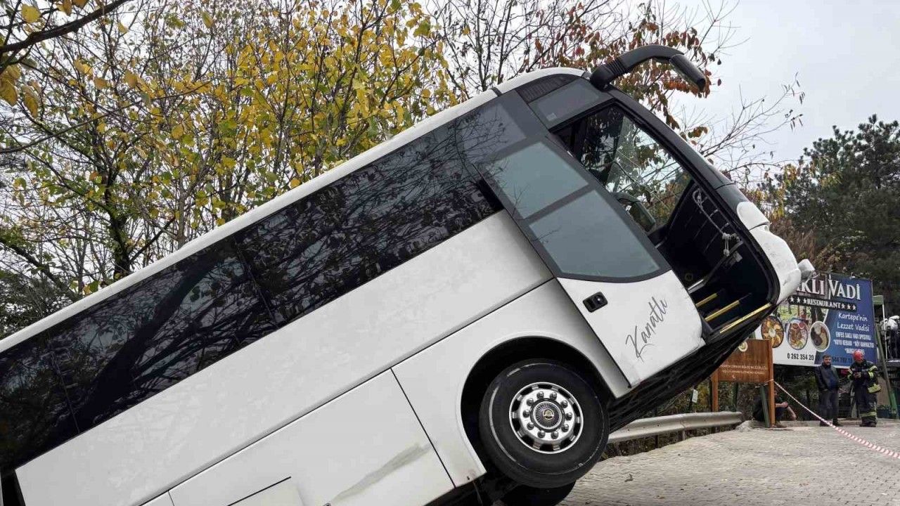 Kocaeli’nin Kartepe ilçesinde park halindeyken hareket eden tur otobüsü bariyeri aşıp şarampole düştü. Facianın eşiğinden dönüldüğü kazada yaralanan olmadı.