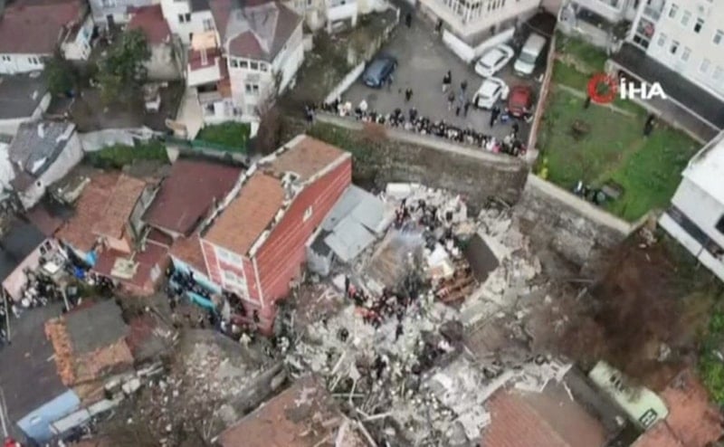 Görgü tanıkları binaların çökmeden önce patlama sesi duyduklarını belirtti. Ekiplerin kurtarma çalışmaları sürüyor.