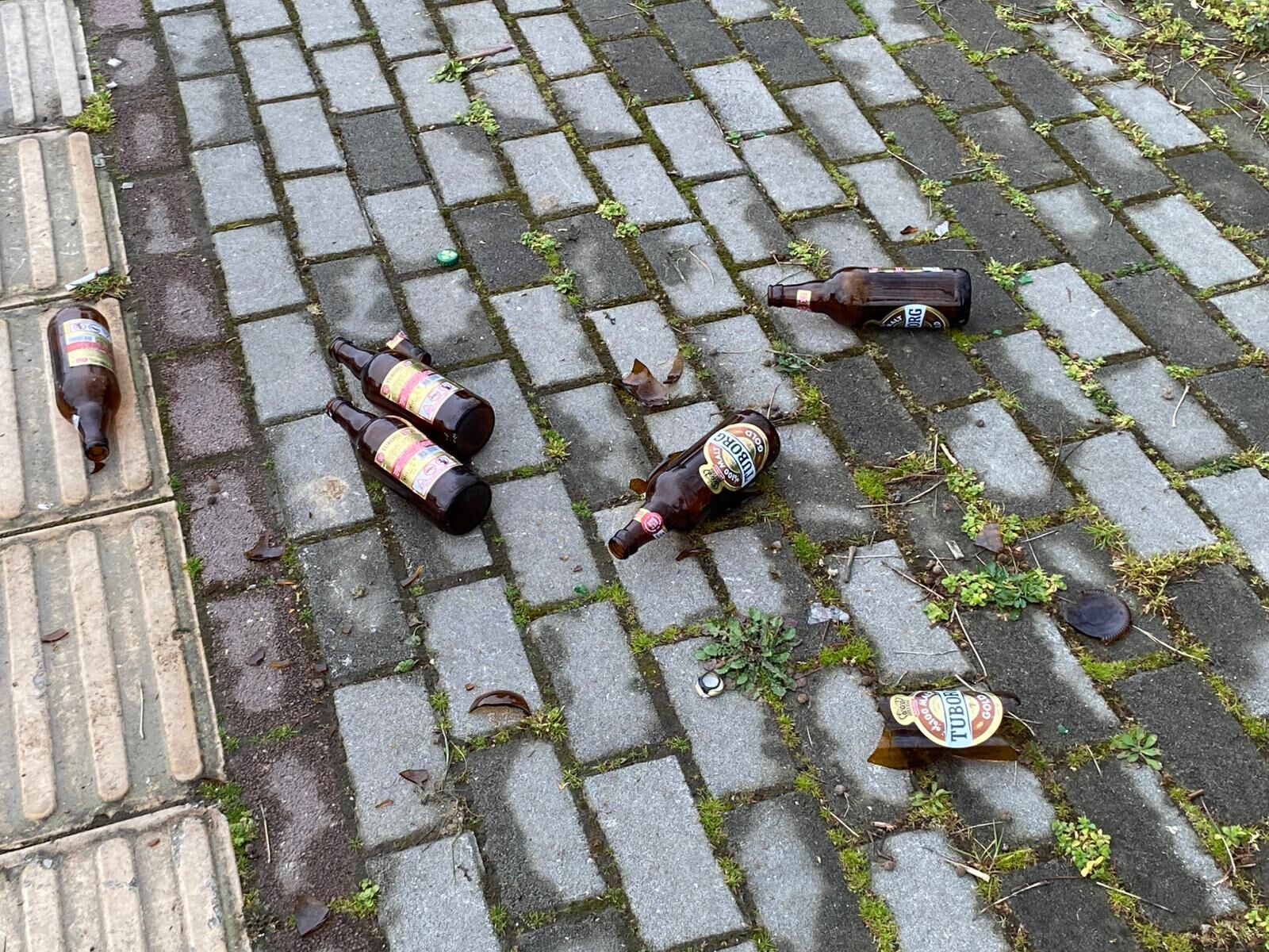 Fethiye Kapalı Pazar Alanı çıkışında neredeyse her gece aynı tablo yaşanıyor. Yerlere bırakılan içki şişeleri, çakmak gazı kutuları ve çeşitli atıklar hem kötü görüntü oluşturuyor hem de sağlık açısından risk taşıyor.