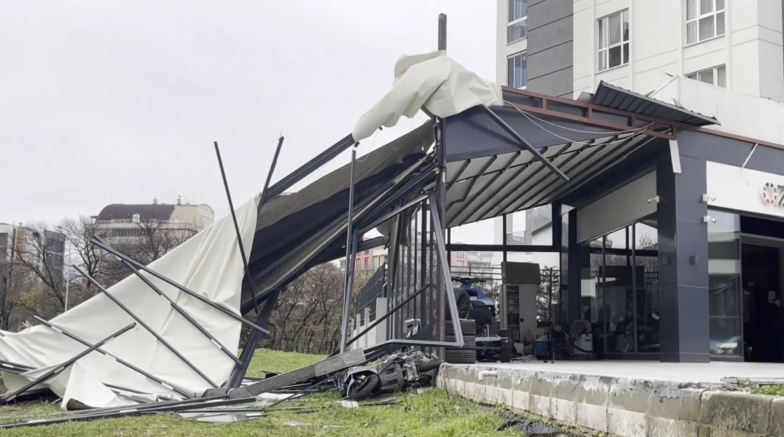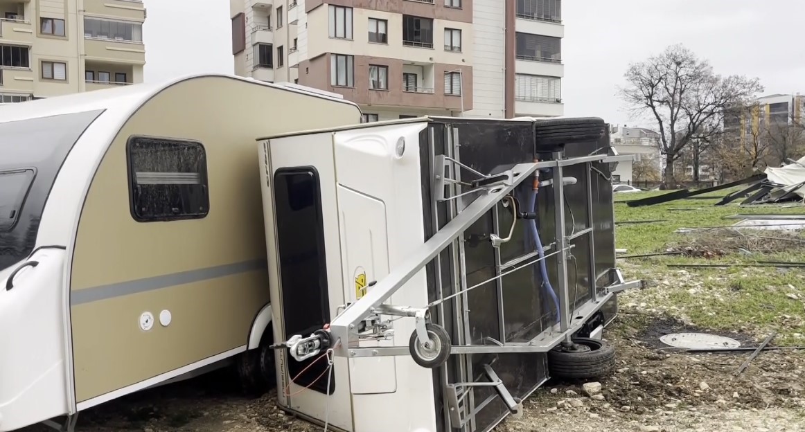 Bursa'nın Osmangazi ilçesinde 3 katlı bir binanın çatısı fırtınada havalanıp sokağa düştü. Olayda şans eseri yaralanan olmadı. Nilüfer ilçesindeki lüks bir galeri önündeki karavan ve motorlar da fırtınada devrilip zarar gördü. Galerinin kepenkleri ise şiddetli rüzgarda uçtu.