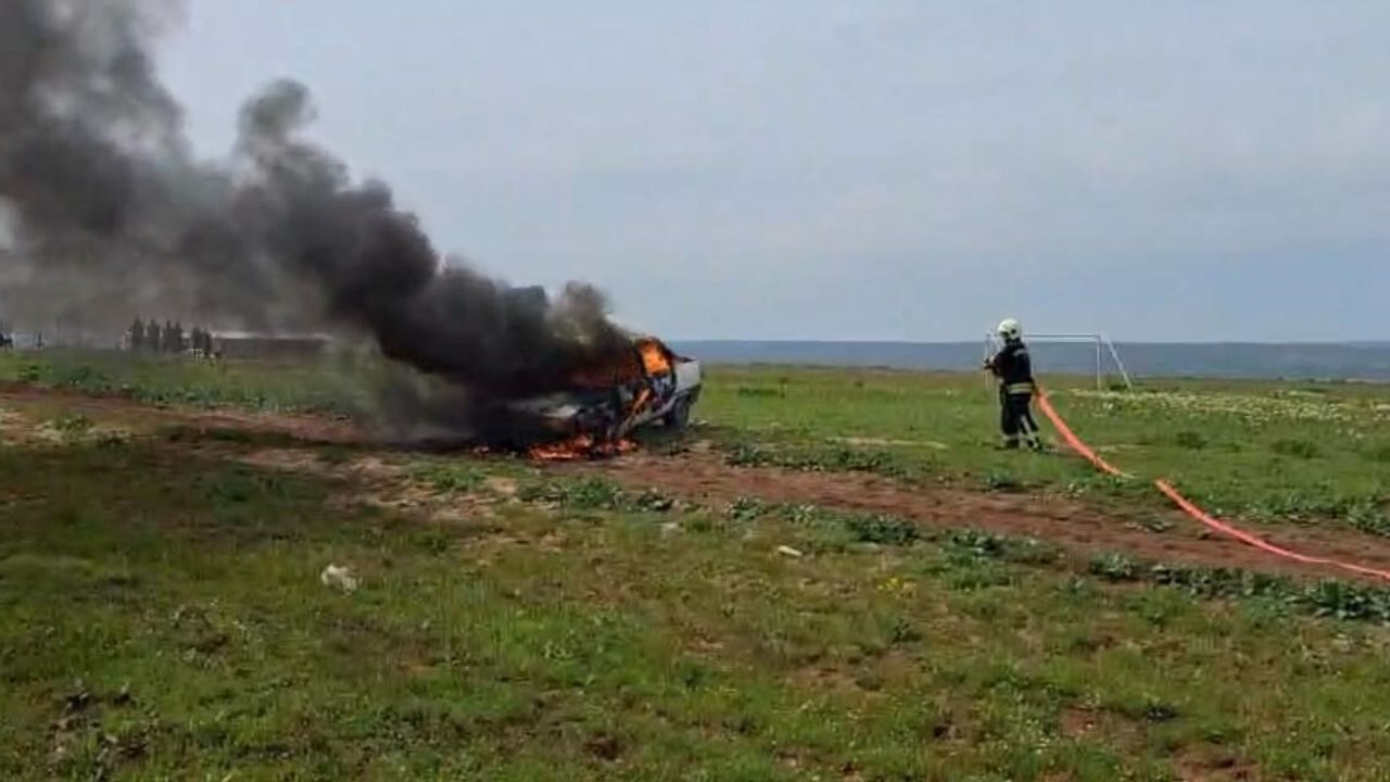 Diyarbakır'ın Çınar ilçesinde gaz kaçağı bulunan otomobil alevlere teslim oldu.