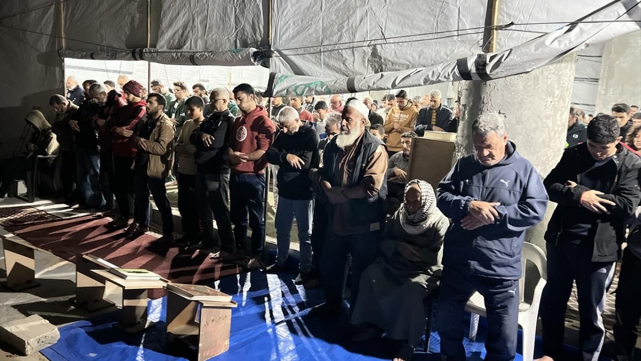 Gazzeliler yarın başlayacak ramazanın ayının ilk teravih namazını kılmak için İsrail saldırılarında yıkılan veya hasar gören camilerin bulunduğu bölgelerin yanı sıra çadır mescitlere akın etti.