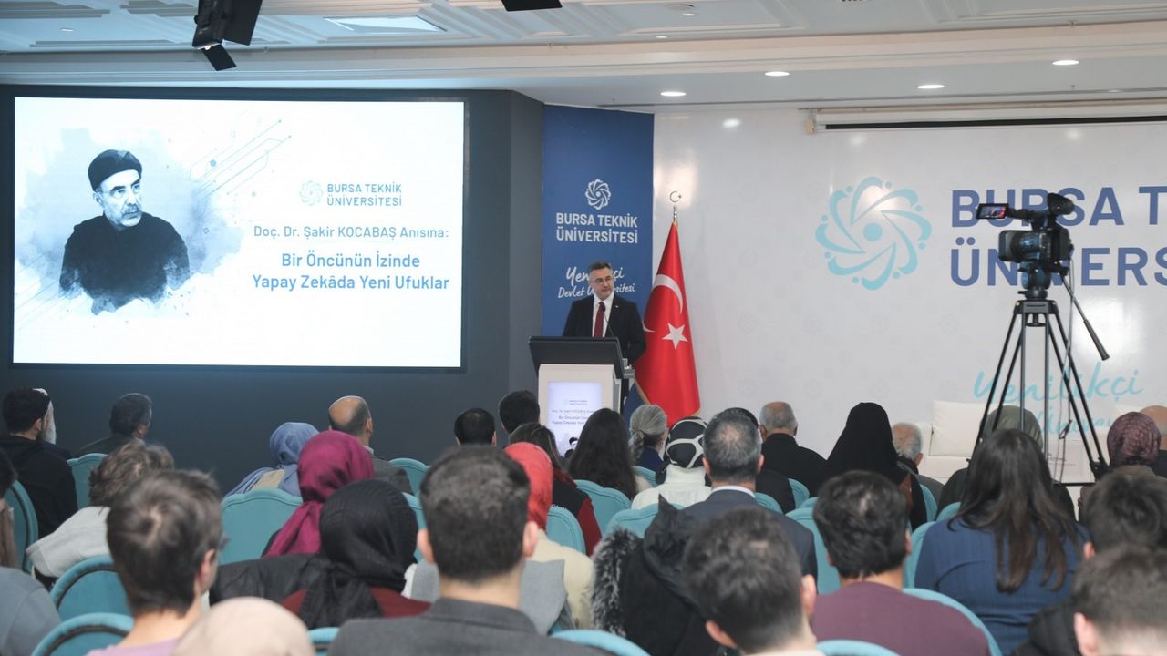 Bursa Teknik Üniversitesinde (BTÜ) "Doç. Dr. Şakir Kocabaş Anısına: Bir Öncünün İzinde Yapay Zekâda Yeni Ufuklar" başlıklı sempozyum düzenlendi. Mimar Sinan Yerleşkesi Turkuaz Salon’da gerçekleşen programa; BTÜ Rektörü Prof. Dr. Naci Çağlar, Yıldırım Kaymakamı Metin Esen, Nilüfer Kaymakamı Murat Süzen, Yıldırım Belediye Başkanı Oktay Yılmaz, akademisyenler ve öğrenciler katıldı. Sempozyumun açılış konuşmasını yapan Rektör Naci Çağlar, "Merhum Doç. Dr. Şakir Kocabaş, yapay zekâdan bilim felsefesine uzanan çalışmalarıyla, teknolojinin yalnızca nasıl üretildiğini değil, hangi amaçla geliştirildiğini de sorgulamış; bilginin ahlâk ve sorumluluk bilinciyle birlikte ele alınması gerektiğini bizlere hatırlatmıştır. Bugünkü program, Şakir Kocabaş Hocamızı anmanın ötesinde; öğrencilerimizin onun açtığı ilmî ve fikrî yolu yeniden düşünmesine, bilime daha derin, daha anlamlı bir perspektiften bakmasına vesile olacaktır" dedi.