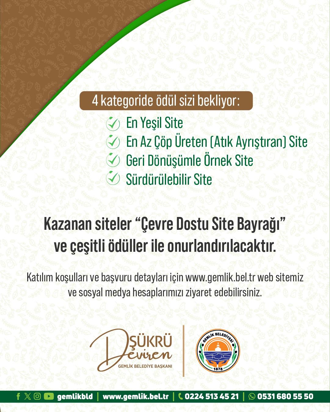 0224 513 45 21 (Dahili: 1351) – Gemlik Belediyesi İklim ve Sıfır Atık Müdürlüğü