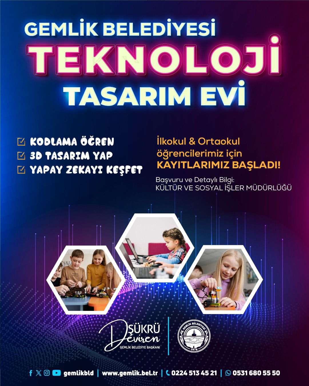 Gemlik Belediyesi, çocuklarımızın hayal gücünü geliştirmek, üretkenliğini artırmak ve onları dijital dünyanın fırsatlarına hazırlamak amacıyla Teknoloji Tasarım Evi projesini hayata geçiriyor.