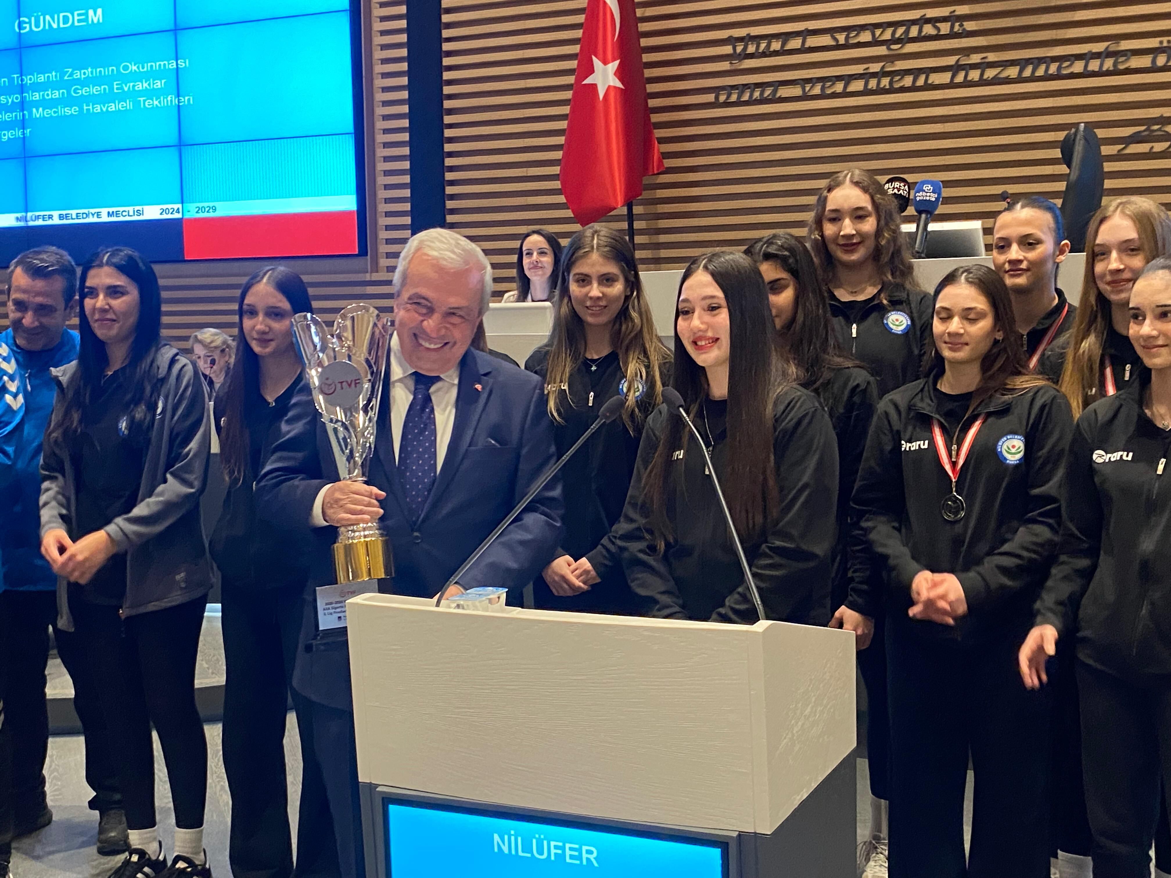 Türkiye Voleybol Federasyonu (TVF) 2025–2026 Voleybol Sezonu kapsamında düzenlenen AXA Sigorta Kadınlar 2. Lig Finalleri A Grubu’nu ikinci sırada tamamlayan Nilüfer Belediye Spor’un kupası, Belediye Başkanı Şadi Özdemir’e takdim edildi.