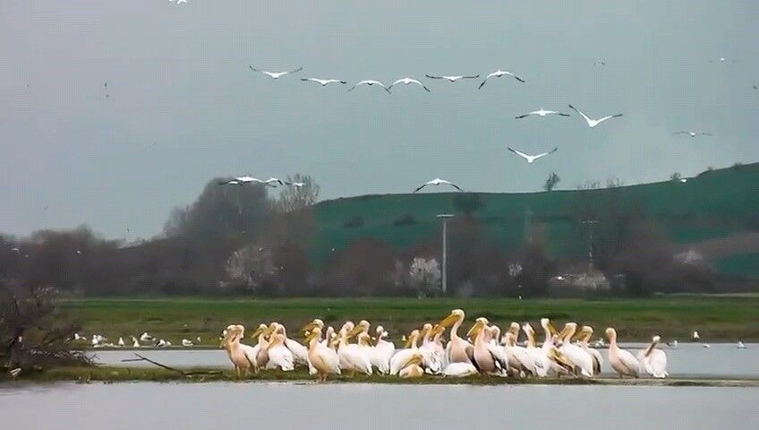 Bölgede günlerdir görülen pelikanlar, doğaseverlerin cep telefonu kameralarına yansıdı. Göç mevsiminin habercisi olan pelikanların bir süre daha bölgede kalabileceği değerlendiriliyor.