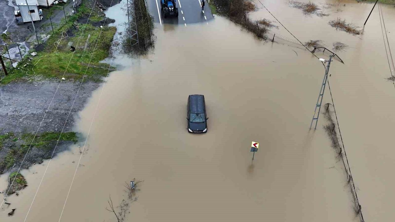 İstanbul'da etkisini sürdüren sağanak yağış, Eyüpsultan ilçesinde hayatı olumsuz etkiledi. Kemerburgaz'da yollar göle döndü. Çiftalan Mahallesi'nde ise suyla kaplanan yolda bir araç mahsur kalırken, sürücünün aracıyla birlikte kurtarılmak istemesi dikkat çekti. O anlar havadan görüntülendi.