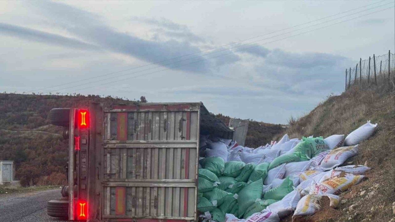 Kaza sabah saat 08.35’te Manisa’nın Gördes ilçesinde meydana geldi. Edinilen bilgiye göre Gördes’e bağlı Beğenler Mahallesi yakınlarında meydana geldi. Ümit Balta (46) yönetimindeki 10 UN 446 plakalı yem yüklü tır, virajı alamayarak devrildi.