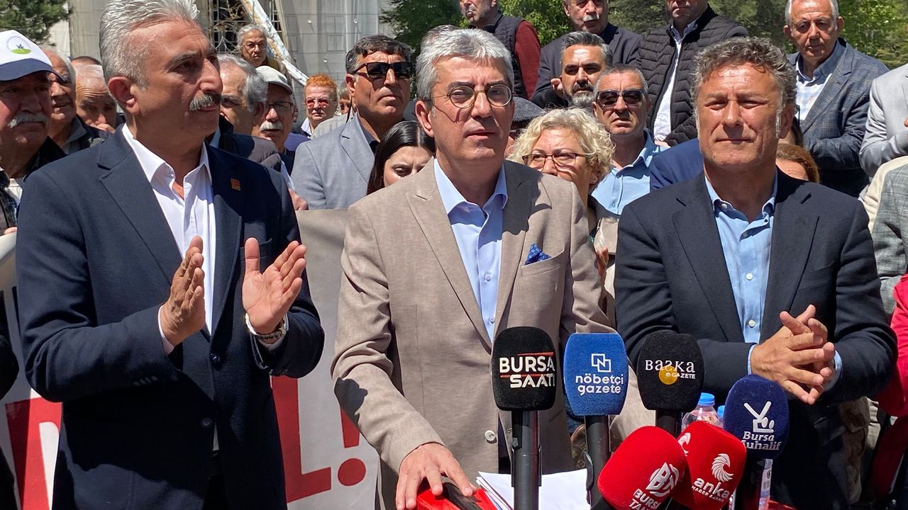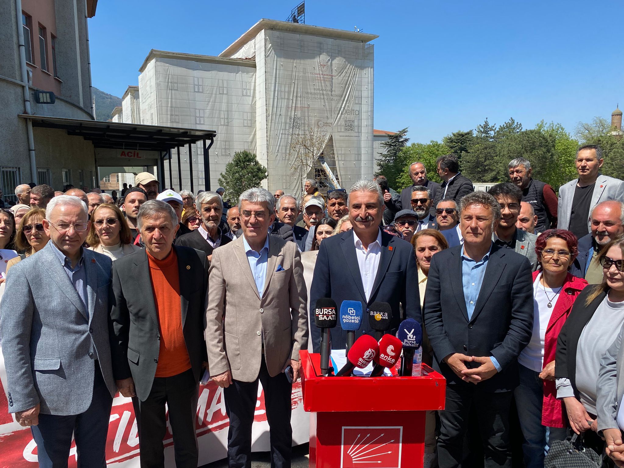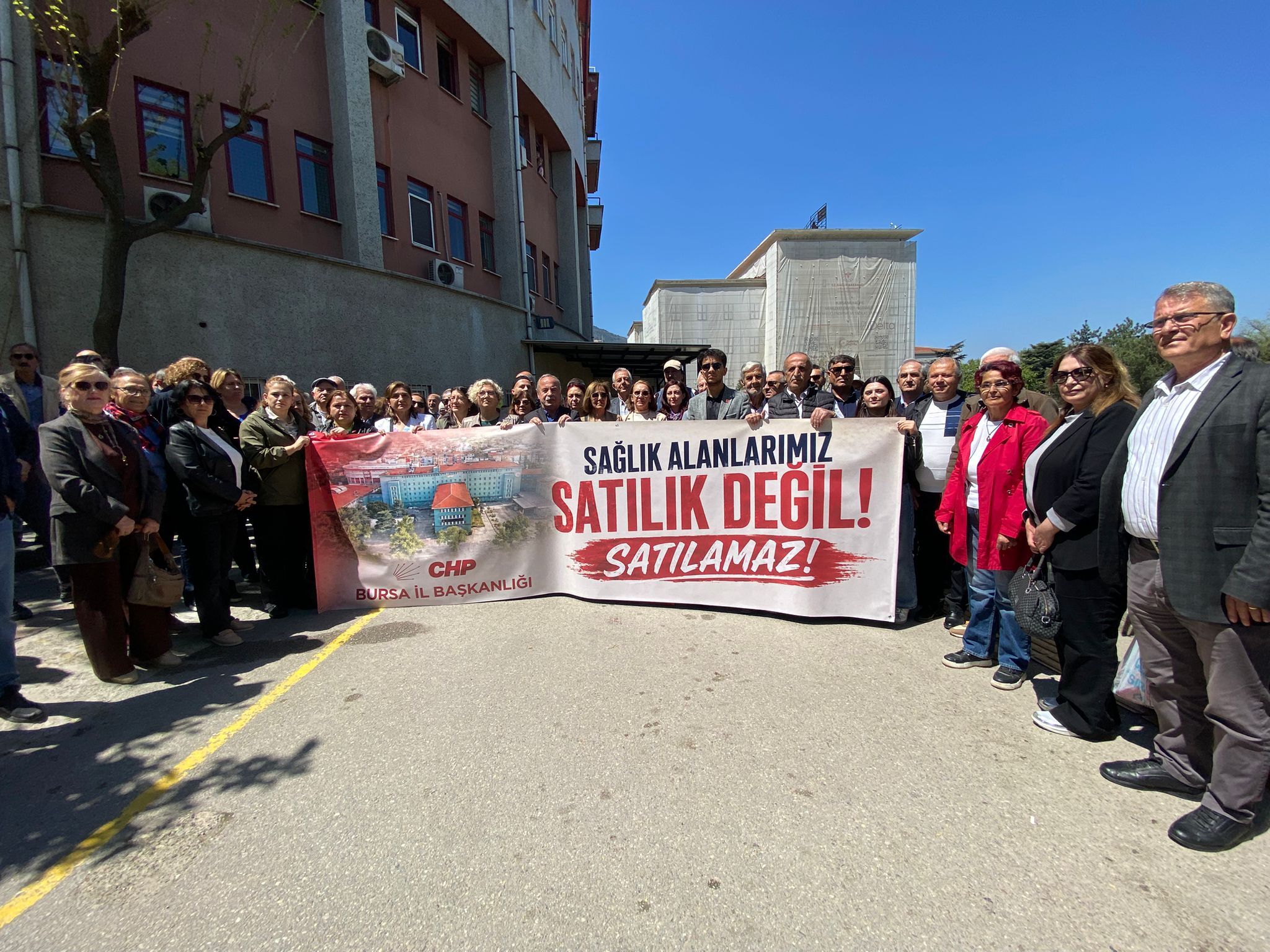 CHP Bursa İl Başkanı Nihat Yeşiltaş, CHP Bursa Milletvekili Orhan Sarıbal ve partililerin katıldığı açıklamada, Bursa’daki sağlık alanlarının özelleştirme kapsamına alınmasına karşı çıkıldı.