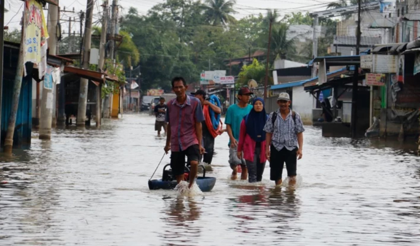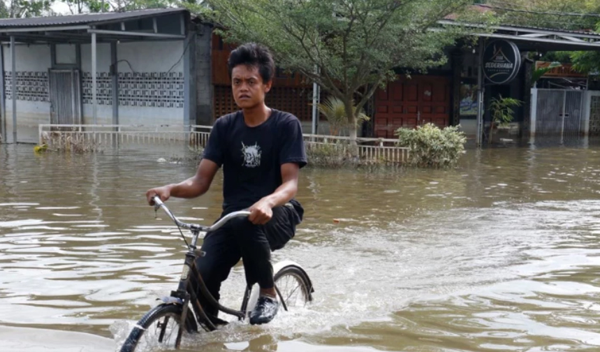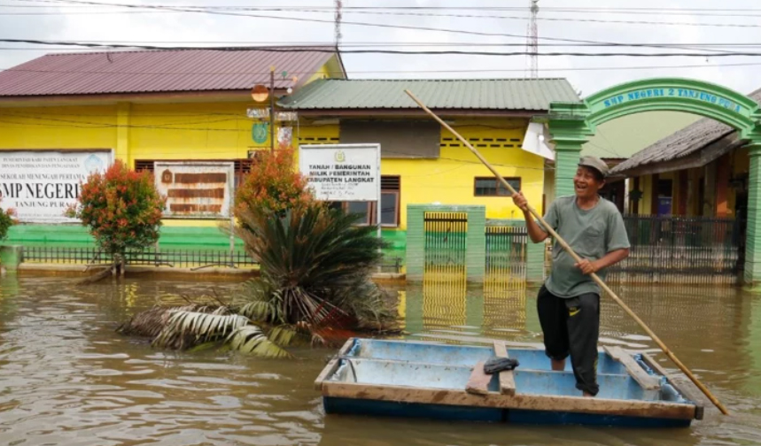 Kuzey Sumatra'nın Langkat bölgesine bağlı Tanjung Pura ilçesinde de yollar ve caddeler sel suları altında kaldı.