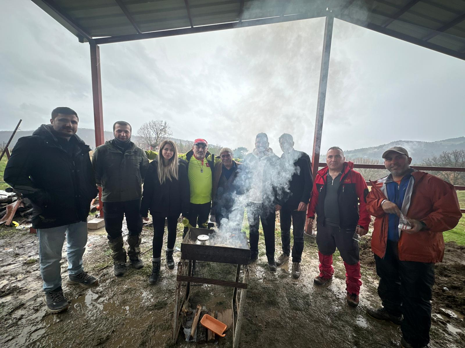 Yürüyüşün en keyifli anlarından biri ise Ökkeş Amca’nın çiftliğinde verilen öğle molası oldu. Grup üyeleri burada mangal yakarak yemeklerini, çaylarını ve kanvelerini hazırladı. Doğanın ortasında, samimi bir ortamda paylaşılan sofralar dostluğu pekiştirdi. Müzik eşliğinde çekilen halaylar ve yükselen kahkahalar, etkinliği sadece bir doğa yürüyüşü olmaktan çıkarıp adeta bir dayanışma ve kardeşlik buluşmasına dönüştürdü.