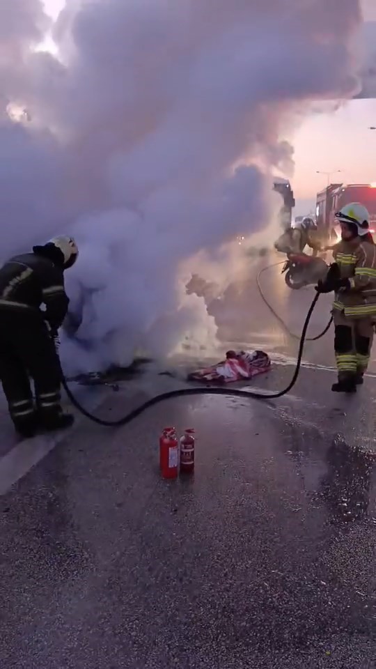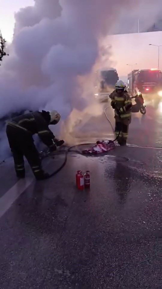 Olay, Nilüfer ilçesi Görükle Mahallesi’nde meydana geldi. Edinilen bilgiye göre, İstanbul-İzmir otobanına çıkmak için ilerleyen otomobilin motor kısmından dumanlar yükselmeye başladı. Volkswagen marka otomobilini yolun kenarına çeken sürücü, yangın tüpüyle müdahale etmek istedi. Alevlerin bir anda çoğalmasıyla vatandaşlar da araçlarından aldıkları yangın tüpleriyle destek olmaya çalıştı. İhbar üzerine olay yerine itfaiye ekipleri gelirken, otomobilin motor kısmı tamamen küle döndü.