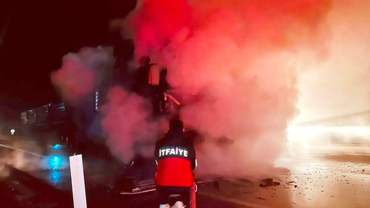 Kütahya’da kara yolunda seyir halindeki tırın motor kısmında çıkan yangın itfaiye ekiplerince söndürüldü. Yangın sonucu tır kullanılmaz hale geldi.
