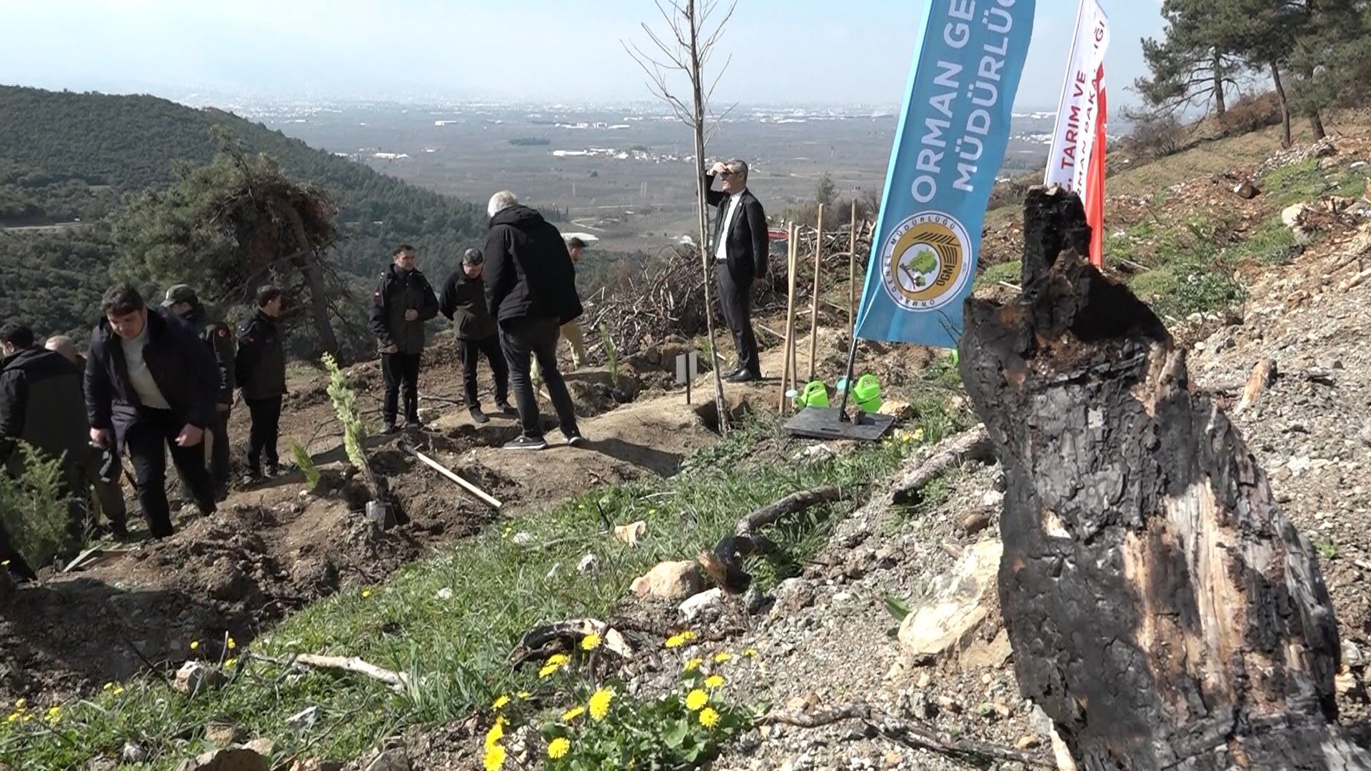 "Bursa Orman Bölge Müdürlüğü, Bursa, Yalova ve Bilecik illerinde 11 işletme müdürlüğü ve 1 fidanlık müdürlüğünden oluşmaktadır. Toplam orman bölge müdürlüğümüzün 771 bin 845 hektar ormanlık alanı, Bursa ilinde de 483 bin 542 hektar orman alanı mevcuttur. Yangınların çıkış sebebinin yüzde 95'i insan kaynaklı. Sadece yüzde 5'i doğal yangınlar dediğimiz yıldırım yangınlarıdır. Bursa ilinde 2025 yılında 88 adet yangında 5 bin 380 hektar ormanlık alanımız zarar gördü. Biz Orman Genel Müdürlüğü ve Bursa Orman Bölge Müdürlüğü olarak yanan alanlarda kısa sürede hasar tespiti çalışmaları ve rehabilitasyon çalışmalarına başladık. Bin 434 hektar sahada tabiî gençleştirme çalışması, 2 bin 390 hektar sahada suni gençleştirme çalışması ve bin 481 hektar sahada da ağaçlandırma çalışmaları yaptık. Ayrıca 149 hektar taşlık kayalık alanlarda da rehabilitasyon çalışması yaptık. Bunları yaparken 17 kilometre yeni yangın müdahale zonları oluşturduk. 100 kilometre yeni yol yaptık. 2 bin 941 kilometrede teras tesis ettik. Bu 2 bin 941 kilometre yeni tesis etmiş olduğumuz teraslara ise 2 milyon 267 bin adet fidan diktik. Ayrıca, tohumun yeterli olmadığı, az olduğu yerlerde de 25 ton tohum attık. Bugün itibariyle Bursa ilinde yanan alanlarımızdaki yeniden rehabilitasyonu, fidan dikilmesi, tohum atılması çalışmalarını yüzde 99 oranında bitirdik. Bugün son fidanlarımızı siz değerli basın mensuplarıyla beraber dikiyoruz."