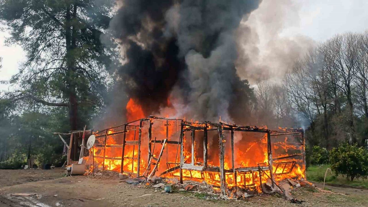 Muğla'nın Köyceğiz ilçesi Beyobası kavşağı mevkiinde hasır üretimi yapılan evde hasırların tutuşması sonrası hasır ev tamamen yandı.
