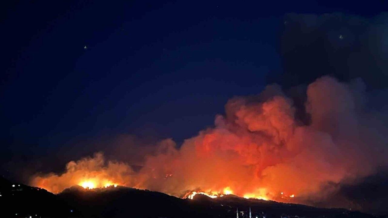 Hatay’ın Dörtyol ilçesinde çıkan orman yangınında metrelerce yukarıya çıkan alevler geceyi aydınlattı. Ekiplerin yangına müdahalesi devam ediyor.