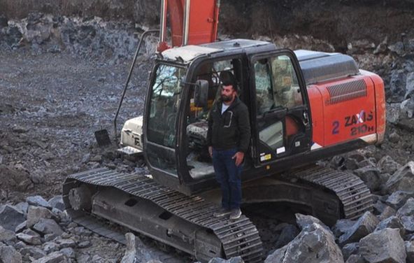 Kars'ta bir vinç operatörü, çalışmasına ara verip saygı duruşunda bulunurken objektife böyle yansıdı.