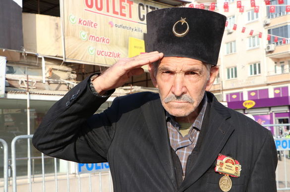 Ordu'da bir yurttaş, Atatürk'ün resmiyle saygı duruşunda bulundu.