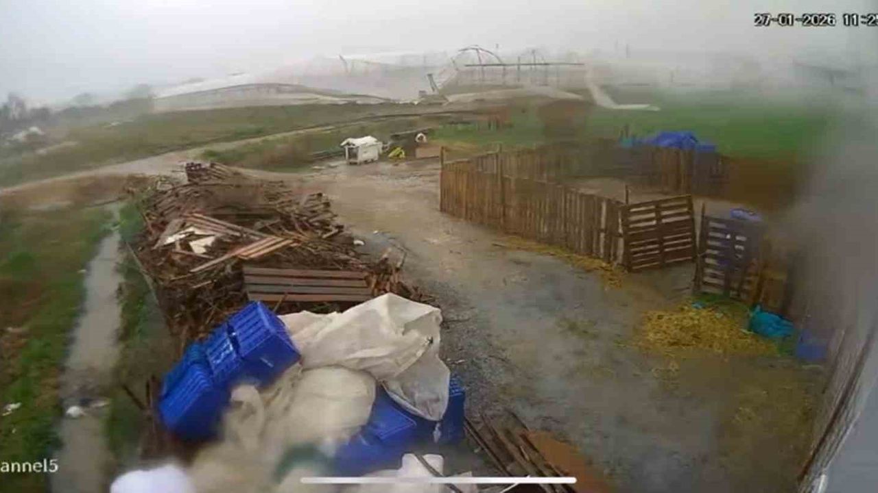 Meteoroloji 4. Bölge Müdürlüğü'nün 'sarı kod' ile uyardığı Antalya'da şiddetli fırtına ve sağanak yağış ilçelerde de etkili oldu. Sağanak yağış nedeniyle Serik ilçesinde tarım arazileri ve seralar zarar gördü. Zırlankaya Mahallesi'nde ise meydana gelen hortum, bir serayı saniyeler içinde parçaladı. Hortumun seraya ulaştığı ve naylonların koparak savrulduğu anlar, çevredeki bir iş yerine ait güvenlik kamerasına anbean yansıdı. Görüntülerde sağanak yağış anında hortumun serayı vurduğu ve naylonların koparak çevreye savrulduğu görüldü.