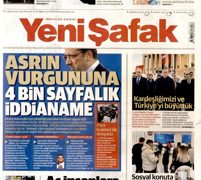Yeni Şafak’ın iddiasına göre, iddianamede Ekrem İmamoğlu "1 numara" olarak gösterildi.