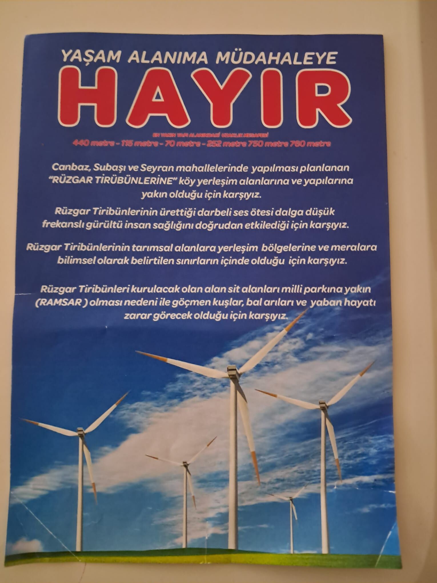 Bir rüzgar tribünün 85 ile 120 metre olduğu düşünülürse itirazların haksız olduğu söylenemez.