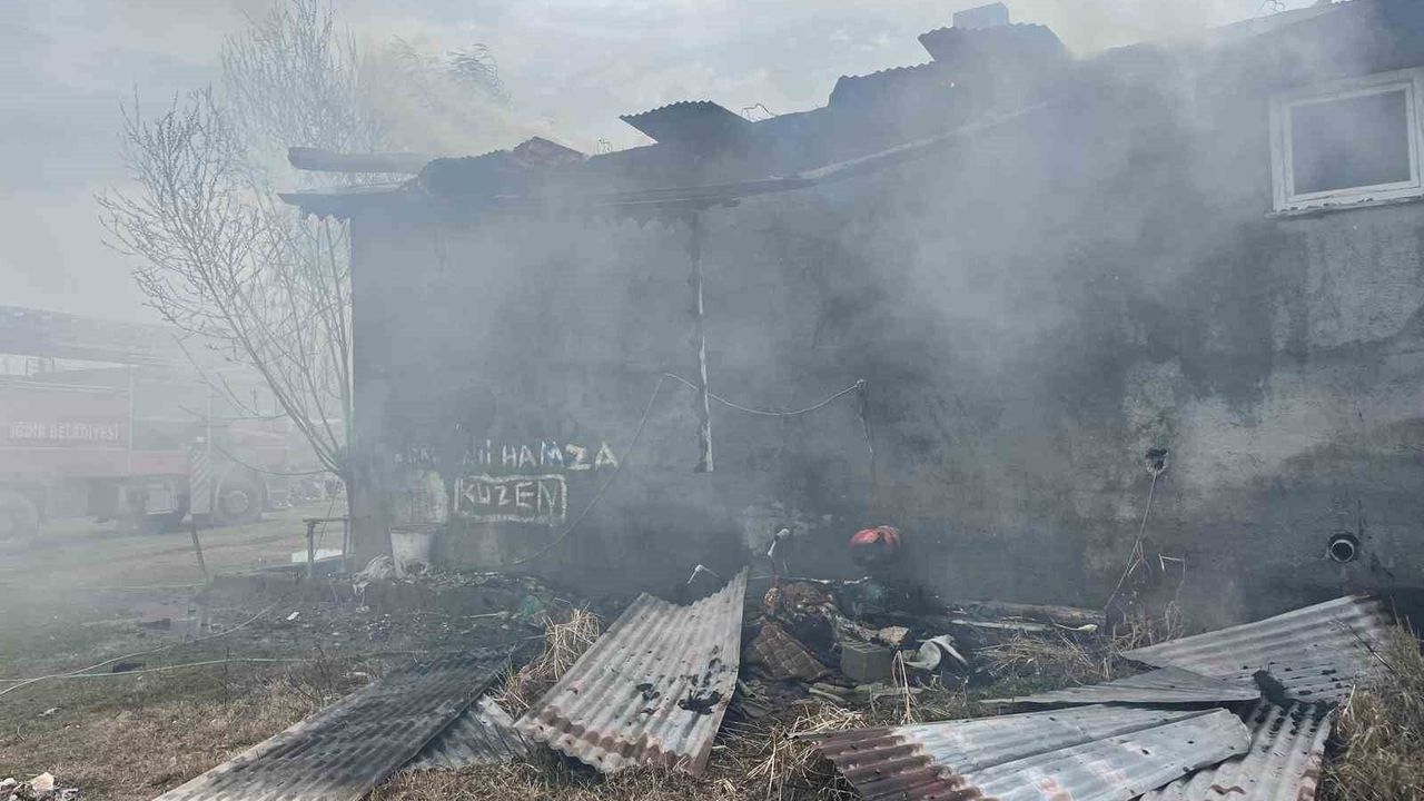 Iğdır'ın Karakoyunlu ilçesine bağlı Cennetabat köyünde bir ev, çıkan yangında kullanılamaz hale geldi.