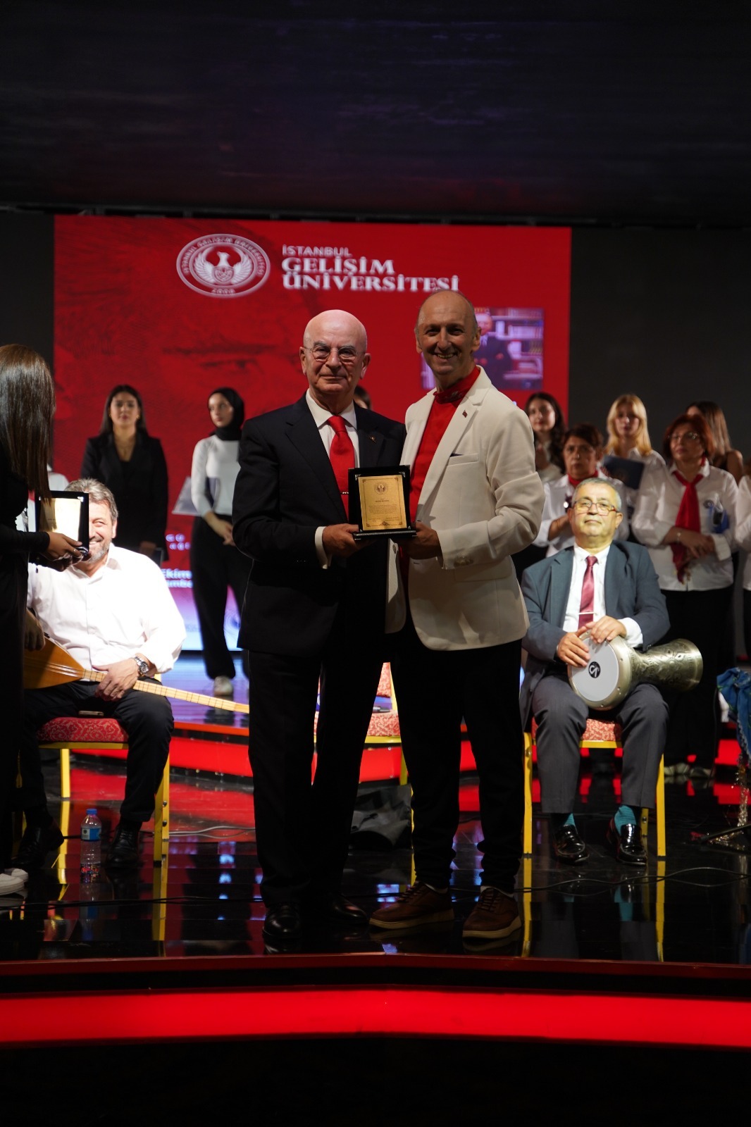 Etkinliğin sonunda konuşmacı akademisyen konuklarla Gençleşen Türküler Proje Topluluğuna plaket ve belgelerini İstanbul Gelişim Üniversitesi Rektörü Prof Dr Bahri Şahin adına Sağlık Bilimleri Fakültesi kurucu müdürü Dr. Öğr. Üyesi A.Yüksel Barut sahnede takdim ettiler.