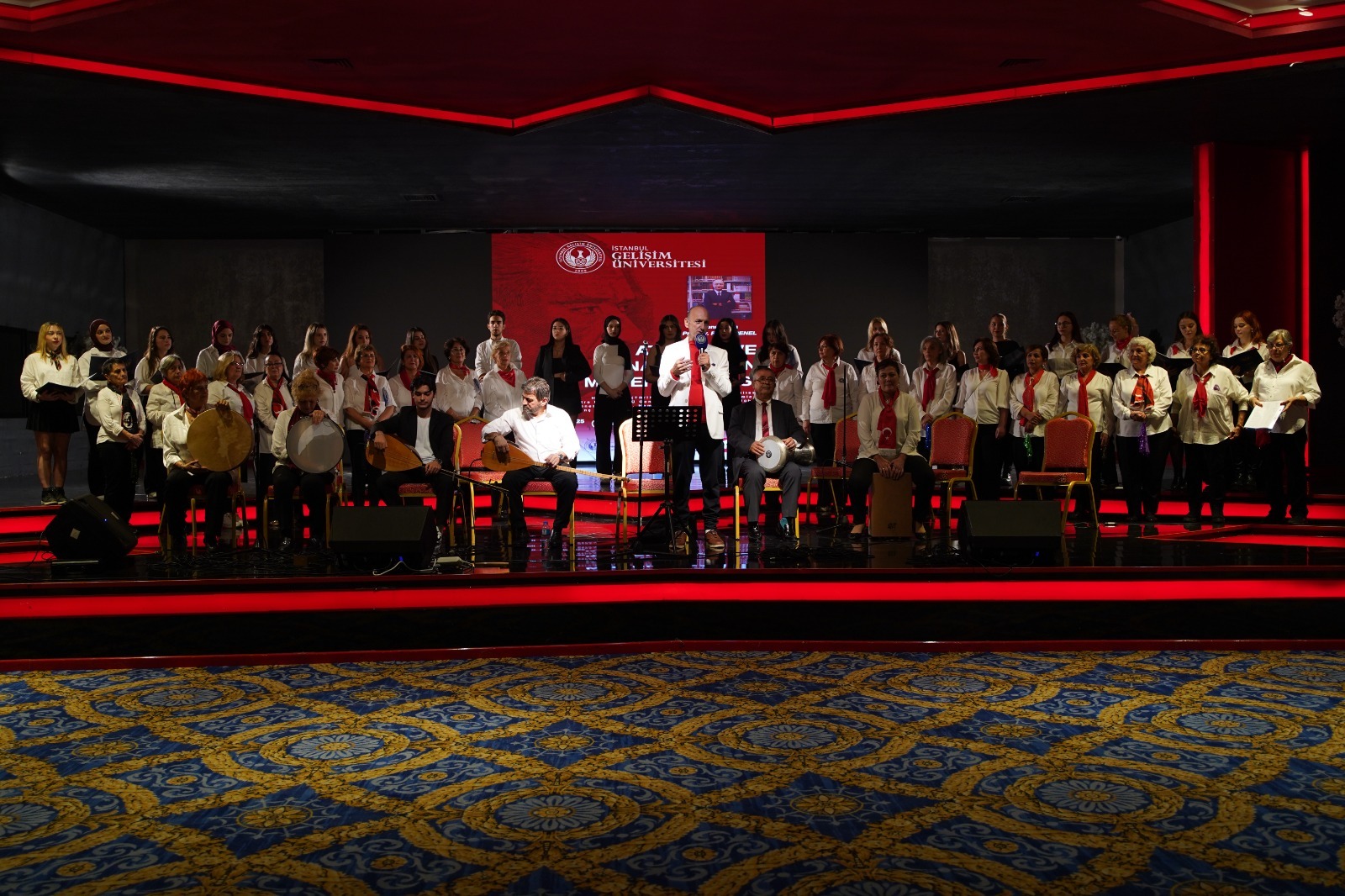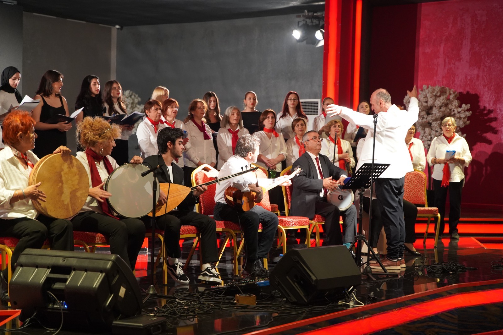 Topluluk, Genel Sanat Yönetmeni şef Erdinç Ertüzün yönetiminde Atatürk’ün sevdiği türküler yanında cumhuriyetin ilanını yurdun her yöresinden halaylar horonlar zeybekler barlarla kutladıkları birbirinden güzel eserleri salondaki tüm gençlerle birlikte coşkuyla seslendirdi.