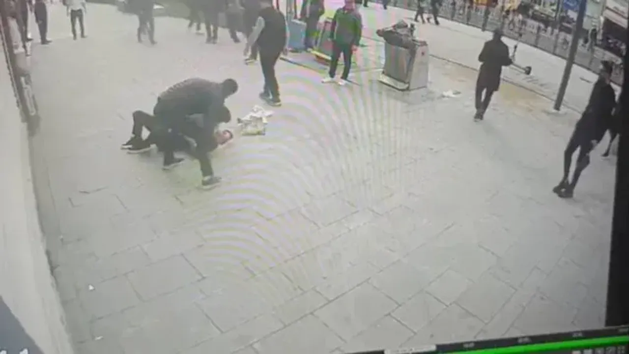 Çevredeki vatandaşların araya girmesiyle kavga son bulurken, o anlar güvenlik kamerasına yansıdı.