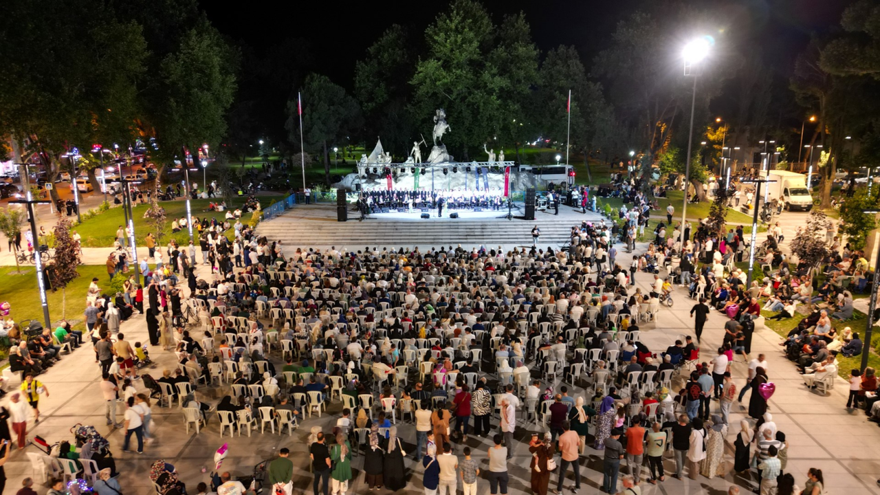 Şef Diler Yalaza yönetimindeki İnegöl Belediyesi Türk Sanat Müziği Korosu, 21.00’da heykel önünde kurulan sahnede birbirinden güzel Türk sanat müziği eserlerini seslendirildi. Koro ve solo şeklinde geçmişten günümüze uzanan seçkin eserlerle izleyicilere adeta müzik ziyafeti sunuldu. Kaymakam Eren Arslan, Belediye Başkan Yardımcısı Emin Dündar ve konseri dinlemeye gelen vatandaşlar, meydanı doldurarak eserlere zaman zaman eşlik edip koronun performansıyla unutulmaz bir gece yaşadı. Müzikseverlerin büyük coşkuyla takip ettiği etkinlik sonunda, İnegöl Belediyesi Türk Sanat Müziği Korosu alkışlarla kutlandı.