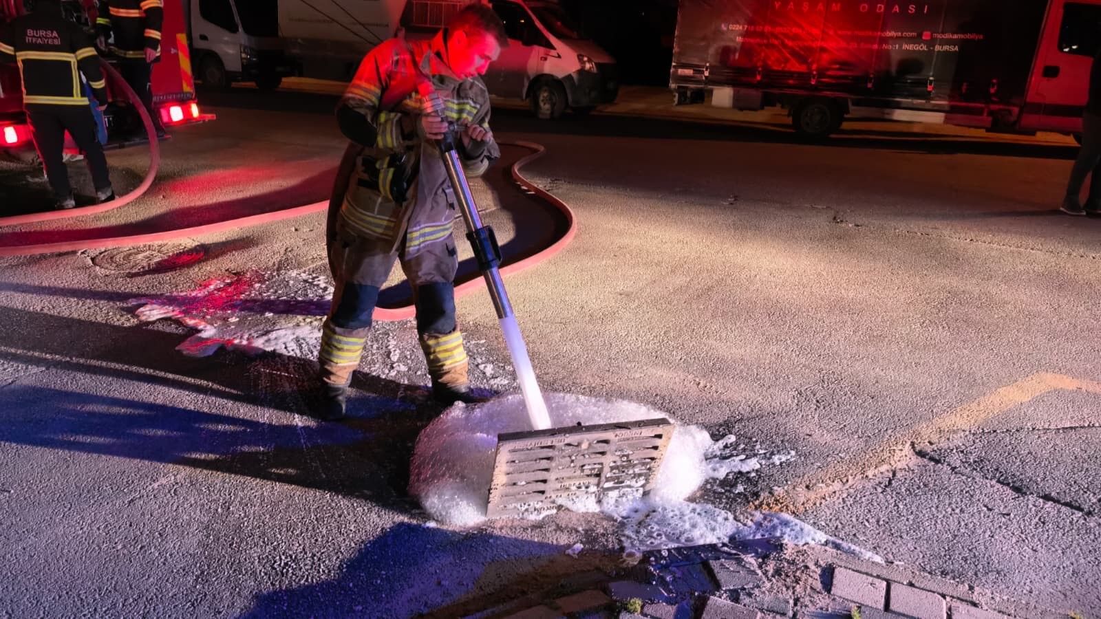 Olay, saat 03.00 sıralarında İnegöl ilçesine bağlı Orhaniye ve Mesudiye mahallelerindeki bazı adreslerde yaşandı. Orhaniye Mahallesi'nde bulunan bir apartmanda yaşayan vatandaşlar, dairelerinde gaz kokusu hissetti. Kokunun kaynağını kontrol etmek isteyen bir kişi tuvalette çakmak çaktı. Çakmaktan çıkan alev nedeniyle bir anda patlama ve harlama meydana geldi. Patlamanın etkisiyle tuvalet giderinden çıkan atıklar etrafa saçıldı.