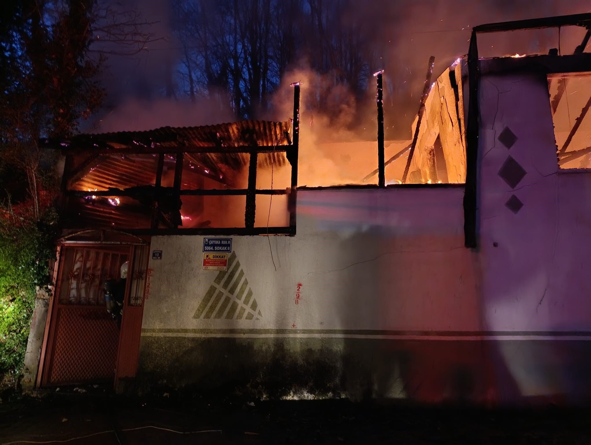 Henüz belirlenemeyen nedenle çıkan yangını fark eden ev sahibinin ihbarı üzerine olay yerine çok sayıda itfaiye ve jandarma ekibi sevk edildi.
