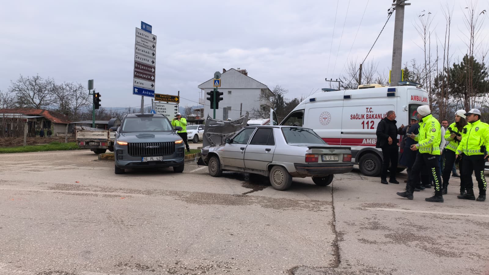 Kaza, saat 15.00 sıralarında Ahmet Türkel çevre yolu İsaören kavşağında meydana geldi. Hamidiye Mahallesi Park Caddesi’nden kavşağa giren Orhan Y. (37) yönetimindeki 16 LV 877 plakalı otomobil ile Ayşenur T. (33) yönetimindeki 16 PL 420 plakalı cip çarpıştı. Cip sürücüsü ile otomobildeki yolcu Veysel A. (72) yaralandı. Yaralılar kaza yerine sevk edilen ambulanslarla İnegöl Devlet Hastanesi’ne kaldırıldı.