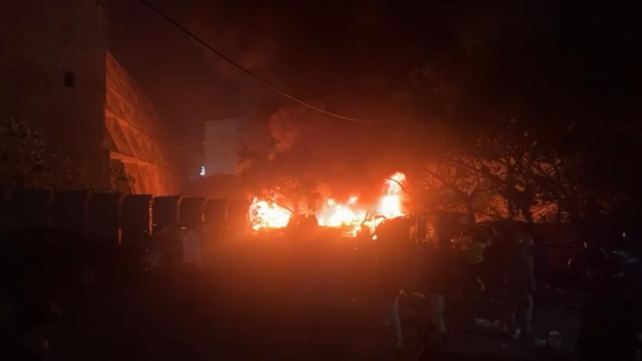Hedef alınan noktadaki araçlarda yangın çıktı.